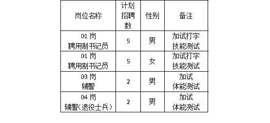 ③資格初審合格的考生,報考01、02崗聘用制書記員的考生,同步進入考場進行打字技能測試;報考03、04崗輔警的考生,同步進入體測場地進行體能測試。