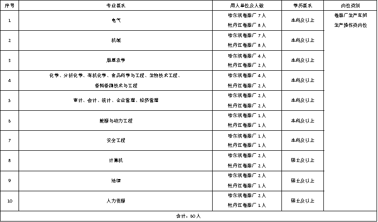 應聘人員須提供本人所在畢業(yè)學校院系出具意見并蓋章的《黑龍江煙草工業(yè)有限責任公司公開招聘人員考察表》。