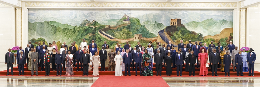 ??9月5日上午,國(guó)家主席習(xí)近平在北京人民大會(huì)堂出席中非合作論壇北京峰會(huì)開(kāi)幕式并發(fā)表主旨講話。這是開(kāi)幕式前,習(xí)近平同出席峰會(huì)的外方領(lǐng)導(dǎo)人集體合影。新華社記者 饒愛(ài)民 攝