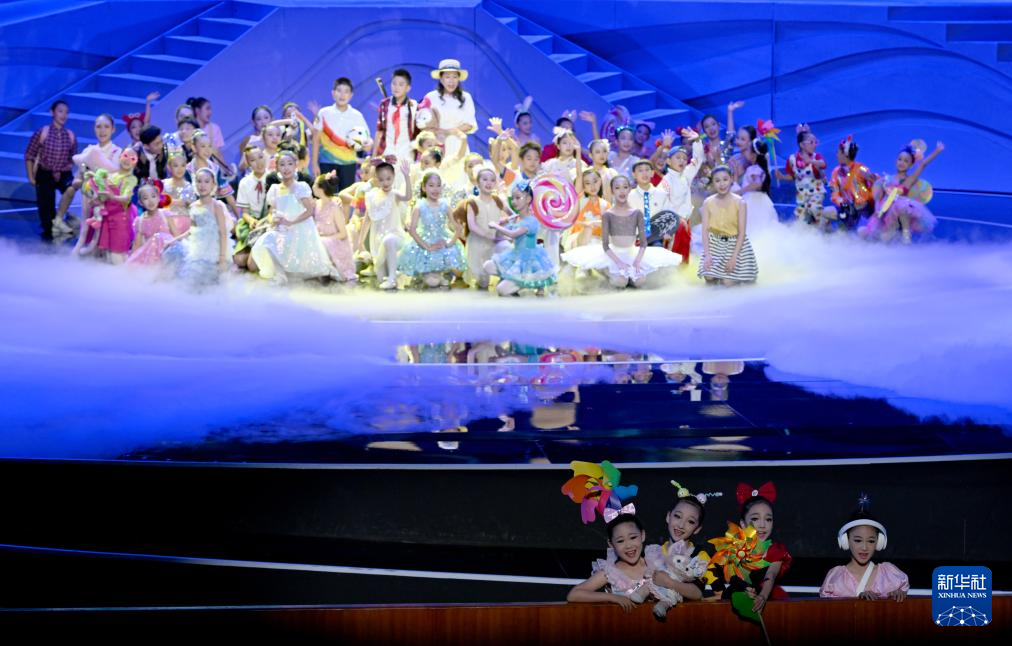 主題演出以“我和祖國一起成長”為主題,分為“生而向陽”“燦爛時光”“一路綻放”“春風雨露”“同心圓夢”五個篇章。演出序幕拉開,在璀璨的舞臺上,孩子們身著五彩斑斕的民族服飾,手牽手快樂地起舞,共同編織出一幅絢麗多彩的民族團結(jié)畫卷。音樂舞蹈劇《追夢·傳承》以展現(xiàn)時代的變遷,激勵廣大青少年銘記歷史、發(fā)奮圖強、建設(shè)祖國;情景節(jié)目《融畫小精靈》將華陰老腔、皮影戲、兒童舞蹈等藝術(shù)元素跨界融合,展現(xiàn)出中華優(yōu)秀傳統(tǒng)文化的獨特魅力;情景秀《目望蒼穹》將香港青少年的武術(shù)表演與內(nèi)地青少年的流行舞蹈相結(jié)合,贏得觀眾陣陣掌聲……主題演出通過音樂情景劇、民族歌舞、多媒體戲劇表演、國風時裝秀、京劇新編等豐富多彩的藝術(shù)形式,講述了新時代青少年兒童與祖國一起成長的故事。